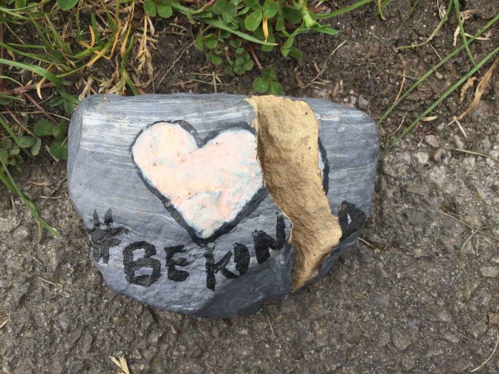And then there were the stones. Small rocks, bits of flat concrete, stones with ….possibilities – each one with a message or a picture. At first it was just ” Thank you NHS” but then other stones were placed – with drawings – messages. Look at this-